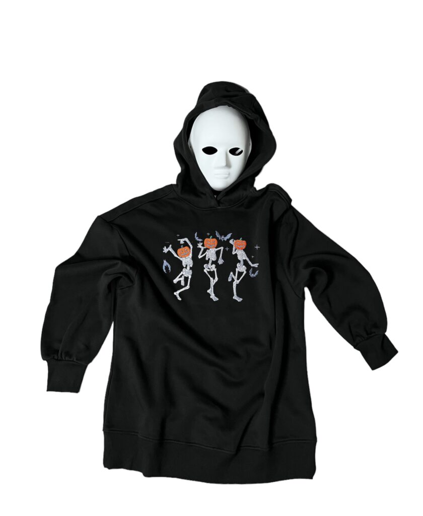 Dámska oversize mikina s malou výšivkou tancujúcich kostlivcov. Rozmer výšivky 100 x 60 mm (š…